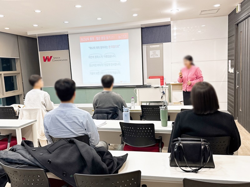 1월 특강을 통해 만난 특별한 만남들 낯섦 가운데에서도 진실된 대화를 하고 싶은 소망들과 집중하는 마음들이 느껴지시나요?지난 1월 17일 토요일 W스피치 강남점에서는 2026년 새해 첫 특강이<호감 가는 말하기의 기술: 말투만 바꿔도 사람이 달라 보인다>라는 주제로 열렸습니다. - 신뢰를 주는 목소리 훈련- 따뜻하게 들리는 말투 디자인- 매력을 더하는 커뮤니케이션 기술 이라는 주제로 진행된 이번 특강이 20명 조기 마감에 현장 추가 등록 요청까지 뜨거웠던 이유는^^참여해주신 분들이 단순한 '말재주'가 아니라'상대를 귀하게 여기는 마음을 제대로 전달하는 법'을 원하시는스피치에 진심인 분들이었기 때문이 아닐까 합니다. 현장에서 직접 소리 내어 말하고, 강사님의 요청에 답변을 완성해가는 한분 한분, 그리고 잘 모르는 서로를 격려하며 웃어주고 박수쳐 주시는 참석자분들을 보면서 더 나은 소통을 향한 따뜻하고 소중한 갈증을 느낄 수 있었던 시간이었습니다. 앞으로도 W스피치는 여러분의 진심이 왜곡 없이 전달되도록, 가장 전문적이고 진심 어린 교육으로 함께하겠습니다. 오늘 함께해주신 모든 분께 감사드립니다 :) 문의전화 1644-02081.서울강남점 2.부산센텀점 3.온라인클래스 4.기업교육