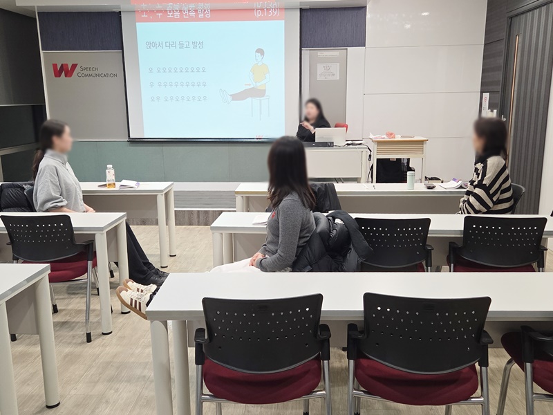 이번 힐링보이스 수업에서는 자신에게 가장 자연스럽고 힘 있게 울리는 목소리 톤을 찾아보는 연습이 진행되었습니다. 공명음을 느끼며 목소리가 어디에서 울리는지 하나씩 확인하고, 각자에게 가장 편안하게 힘이 실리는 톤을 찾아가는 시간이었습니다. 발음을 또렷하게 만들기 위한 연습도 이어졌습니다. ‘ㄴ’의 조음점을 정확히 짚어보며 발음의 위치를 다시 확인하고, 소리가 더 분명하게 전달되도록 반복해 말해보았습니다. 작은 차이지만 발음이 달라지면 말의 인상도 함께 달라진다는 것을 직접 느껴보는 순간이었습니다. 이어 공명음을 활용해 간단한 노래를 불러보며 목소리의 울림을 느껴보고, 거리에 따라 성량을 조절하는 연습도 진행되었습니다. 가까운 거리에서는 부드럽게, 조금 더 멀리서는 안정적으로 목소리를 보내며 상황에 맞게 목소리를 사용하는 방법을 몸으로 익혀보았습니다. 연습을 거듭할수록 목소리는 점점 편안해지고, 말하는 표정도 자연스럽게 달라집니다. 오늘도 수강생들은 각자의 목소리를 조금 더 깊이 이해하며 한층 안정된 소리로 말하는 시간을 만들어갔습니다. 차분하지만 집중력 있는 분위기 속에서, 목소리가 조금씩 달라지는 과정을 함께 느낄 수 있었던 시간이었습니다. 문의전화 1644-0208 1.서울강남점 2.부산센텀점 3.온라인클래스 4.기업교육
