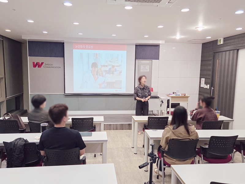 힐링스피치, 수업 속 이야기 세 번째 수업에서는 호감도를 높이는 시각언어 전략에 집중했습니다.같은 말이라도표정, 눈맞춤, 자세에 따라분위기와 설득력이 달라집니다.이번 시간에는 바디랭귀지의 올바른 사용법을 배우고눈맞춤과 표정, 제스처를 통해말에 생동감을 더하는 연습을 진행했습니다.처음에는 어색했던 표현들이점점 자연스럽게 이어지면서각자의 분위기와 매력이 더 또렷하게 드러나기 시작했습니다.특히 지금 이 순간에 몰입해감정을 몸으로 표현해보는 과정에서는표현의 깊이가 한층 더 살아나는 모습이 보였습니다.단순히 ‘말하기’를 넘어서‘전달되는 표현’으로 확장되는 흐름,회차가 쌓일수록 그 변화가 확실하게 드러나고 있습니다.앞으로의 변화가 더욱 기대되는 수업입니다. 문의전화 : 1644-02081.서울강남점 2.부산센텀점 3.온라인클래스 4.기업교육