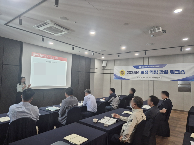 2025 의정 역량 강화 워크숍 충청남도의회 의원 및 직원분들과 함께<설득력을 높이는 리더의 연설·토론 스피치> 교육을 진행했습니다.정책과 비전을 효과적으로 전달하고 공감을 이끌어낼 수 있는리더의 커뮤니케이션 역량 강화를 목표로 했습니다. 유권자의 마음을 움직일 수 있는 임팩트 있는 선거 연설 구성법을 다루고,집중력을 끌어올리는 오프닝과 클로징 기법,청중과의 감정적 연결을 높여주는 스토리텔링 활용법까지실제 의정 활동과 선거 현장에서 바로 적용할 수 있는 요소들을 중심으로 진행되었습니다. 이를 통해 의원 및 직원분들께서는구조적이면서도 감성적인 연설을 완성하는 방법과호소력 있는 음성과 표현력 향상에 대한 스킬을 체득하셨는데요. 앞으로도 정책에 진정성을 담아 전달하고 소통하는말의 힘을 키우는 데 도움이 되길 기대합니다! 문의전화 1644-02081.서울강남점 2.부산센텀점 3.온라인클래스 4.기업교육문의